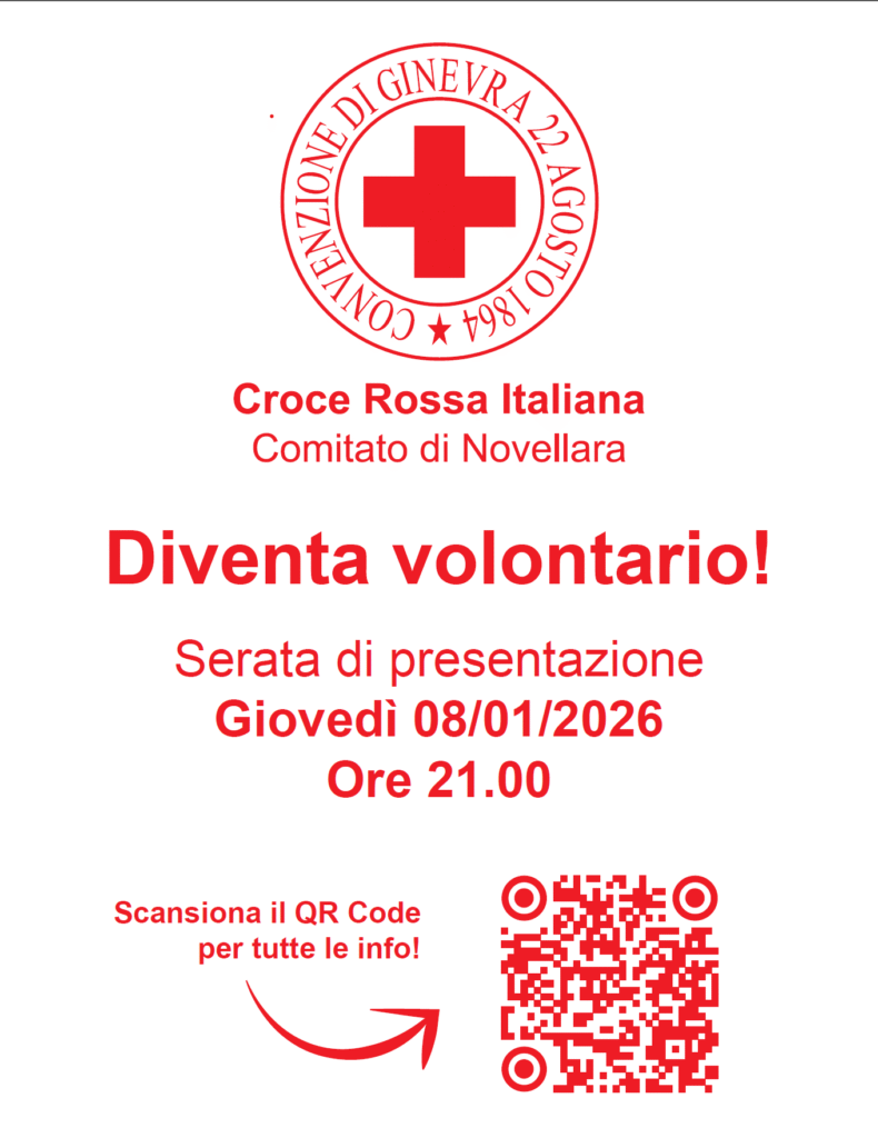 Nella serata di Giovedì 08/01/2026 presso la nostra sede, in largo della solidarietà e pace 1 a Novellara, si terrà la presentazione del corso per gli aspiranti volontari 2026.